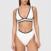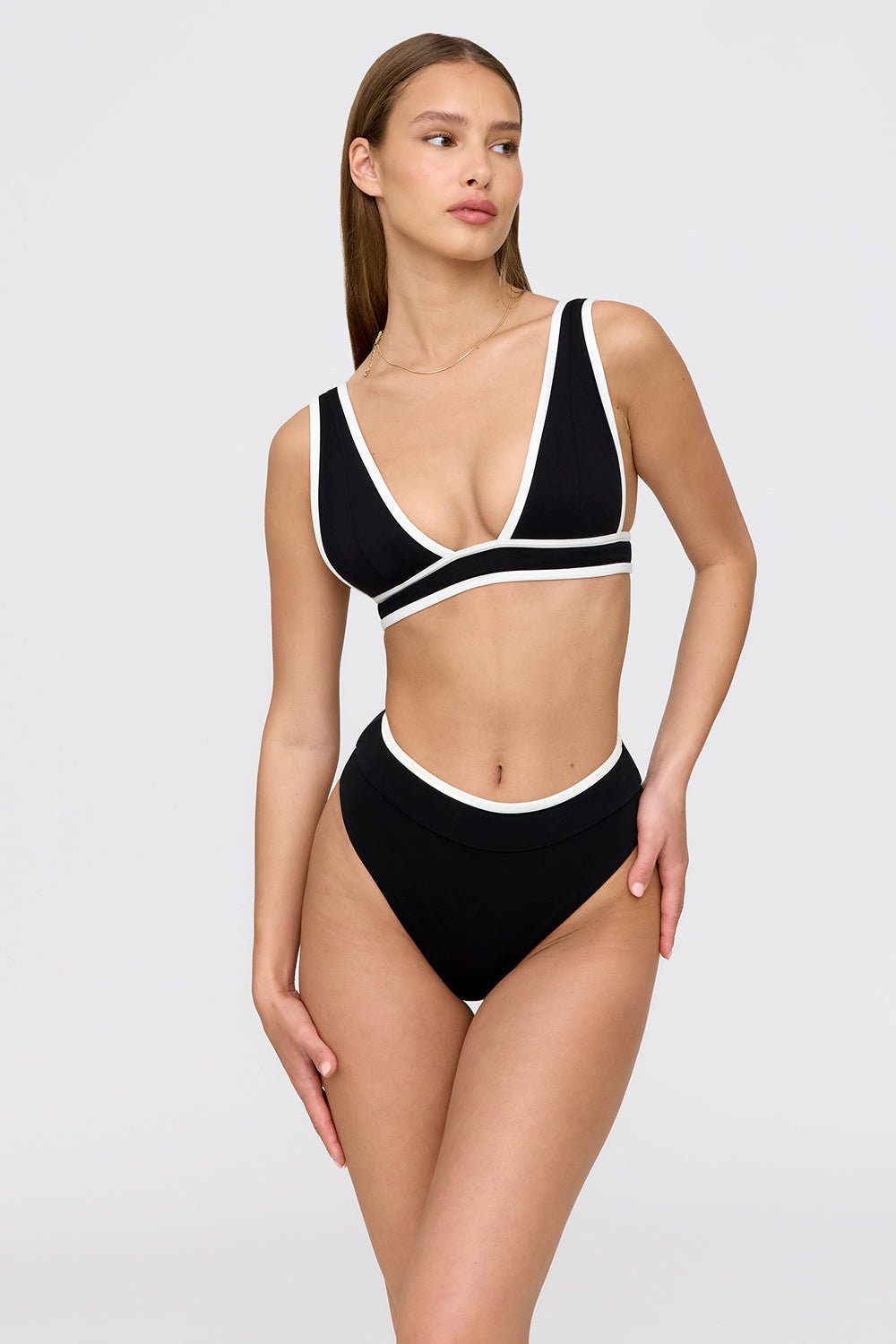 Kos Contrast Trim High Waisted Cheeky Bikini Brief – Shadow Black And Coconut Milk
